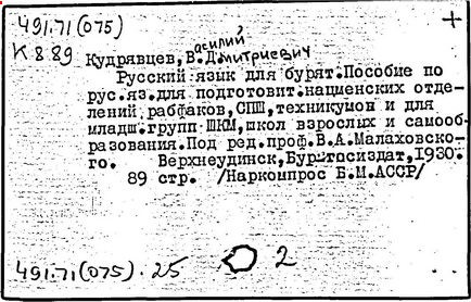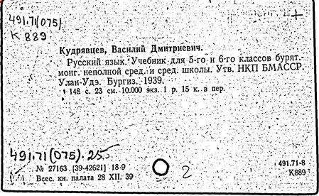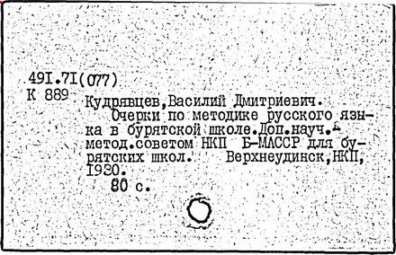 педагог и лингвист, заслуженный деятель науки и техники Бурятской АССР (1963 г.). Доктор педагогических наук (1954 г.), профессор (1955 г.), заслуженный учитель школы Бурятской АССР. Родился в селе Абаканское (ныне Краснотуранск Красноярского края). В 1921-1925 гг. учился в Красноярском институте народного образования и в Иркутском университете. С 1926 г. преподавал русский язык на бурятском и якутском отделениях педагогического факультета Иркутского университета и на рабфаке при нём. В 1933-1943 гг. - заведующий кафедрой русского языка Бурятского педагогического института, в 1943-1957 гг. - заведующий кафедрой русского языка и языкознания Иркутского университета, инициатор создания при филологическом факультете бурятского отделения. С 1957 г. профессор Иркутского педагогического института. Автор работ по методике преподавания русского языка в начальной школе, методике вузовских курсов современного русского языка, сопоставительной грамматике русского и бурятского языков. Среди них: "Преподавание русского языка в V-VIII классах бурятской школы" (1965 г.), "Школьные грамматики русского языка" (1965 г.), другие учебники и пособия по русскому языку для бурятской школы. Установил закономерности ошибок в применении русского языка, специфика которых обусловлена артикуляционной базой, фонетической системой и грамматическим строем родного языка. Труды Кудрявцева способствовали развитию методики преподавания русского языка как неродного.
