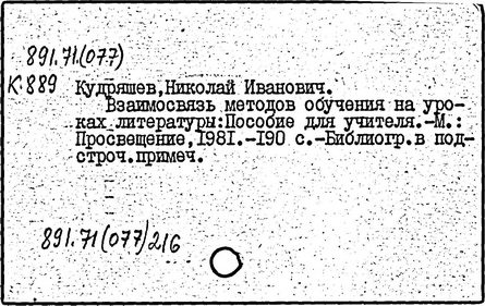 Литература: Беленький Г. И. О методическом наследии Н. И. Кудряшёва // Литература в школе. – 1984. – № 2.