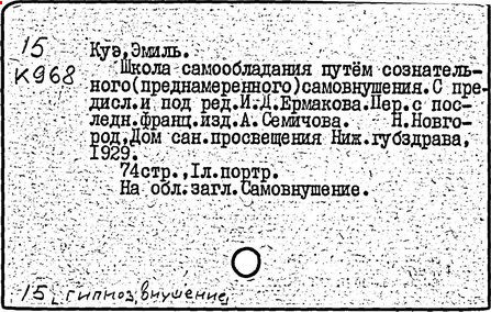 Сочинения: Школа самообладания путем сознательного (преднамеренного) самовнушения». Нижний Новгород, 1928 г.