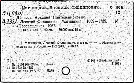 [о первом отечеств. учеб. по математике и его авт. Л. Ф. Магницком,