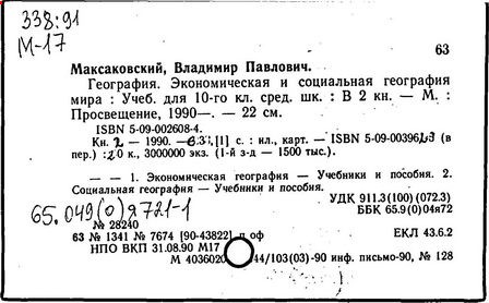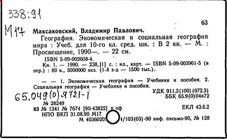 В.П. Максаковский. -7-е изд. - М.: Просвещение, 1999.- 286,[2]