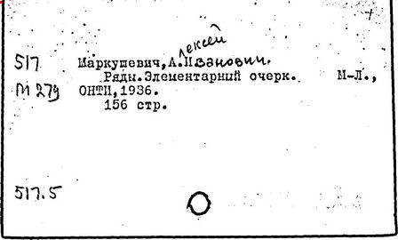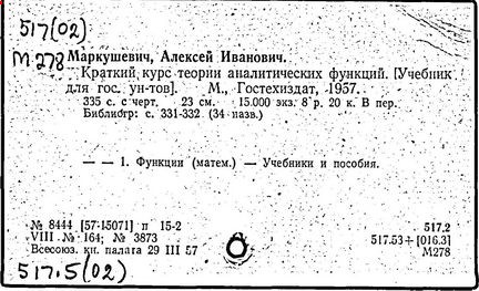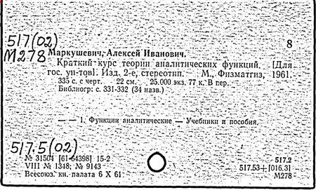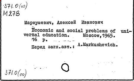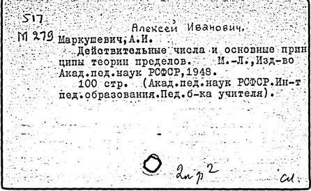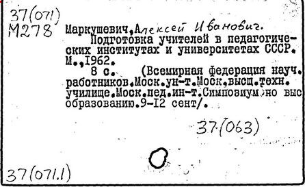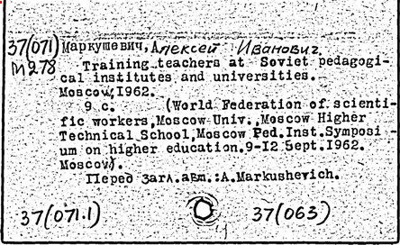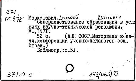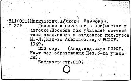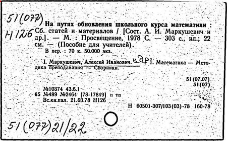 Литература: К семидесятилетию проф. А.И. Маркушевича // Книга. Исследования и материалы, вып. 36. М., 1978; Черкасов Р.С. О методическом наследии А.И. Маркушевича (к 80-летию со дня рождения) // Математика в школе. 1988. № 2.
