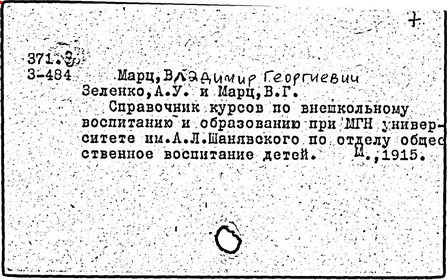 В те же годы В. Г. Марц преподавал теорию и методику подвижных игр в институте физической культуры, в Главной военной школе физического образования трудящихся при Всевобуче. Был руководителем и преподавателем организованных им при этой школе курсов по подготовке инструкторов детских праздников.