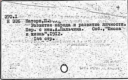 Рассмотрение проблем формирования сознания привело Наторпа к выводу о том, что социальное воспитание наряду с хозяйственной и политической деятельностью является основной функцией, через которую человек осмысляет обществ, действительность. Воспитание занимает приоритетное положение, поскольку истинная социальная потребность - это сам индивид, его "очеловеченность" и его "подлинная индивидность". Наторп стал крупнейшим теоретиком социальной педагогики. В трудах 20-х гг. Наторп распространил воспитательную миссию философии не только на просвещение общества, но и на реализацию социальной утопии как телеологии нового обществ, организма. Наторп оказал значительное влияние на философско-педагогические представления и теории 20 в., в частности на интерпретации педагогики в духе "этического социализма", разрабатывавшиеся марбургской школой.