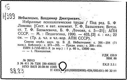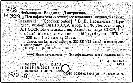 авт. очерка о В. Д. Небылицыне Т. Ф. Базылевич, Б. Ф. Ломов];