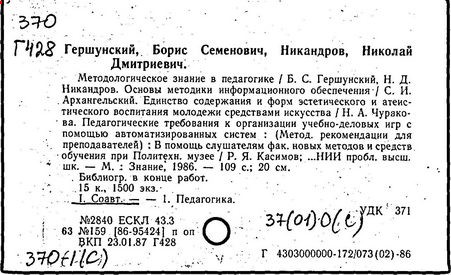 образования "]/ Я.С. Турбовской, Н.Д. Никандров // ОБРАЗОВАНИЕ И