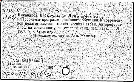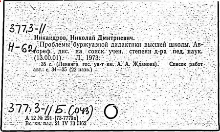 Н.Д. Никандров // Magister. -1997. -N 2. - С. 1-8