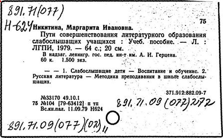 нарушением слуха [Текст]: Учеб.-метод. пособие/ М.И. Никитина, Г.Н. Пенин;