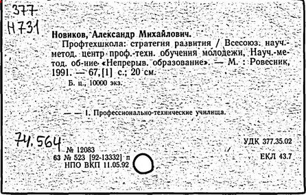 Векторы развития:(Публицист. моногр.)/ Новиков А.М. -М.: Эгвес, 2000.