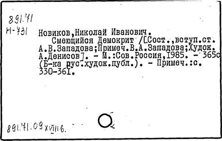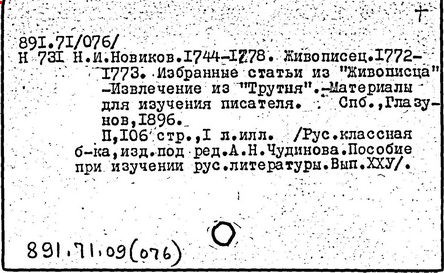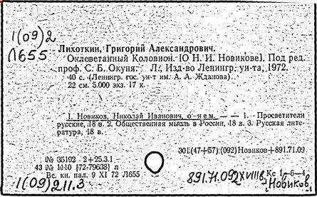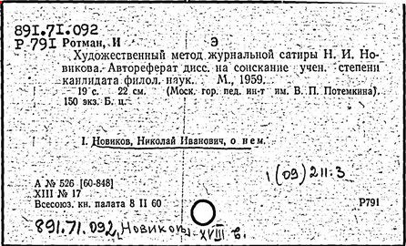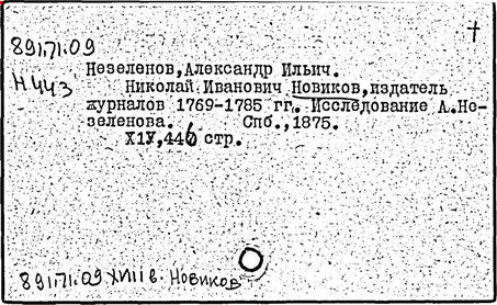 Литература: Незеленов А., Н. И. Новиков - издатель журналов 1769-1785, СПБ, 1875; Макогоненко Г. П., Н. Новиков и русское просвещение XVIII в., М. - Л., 1952; Линькова Н. П., Н. И. Новиков и его роль в истории русской психологии, в книге: Из истории русской психологии, под ред. М. В. Соколова, М., 1961; Западов A. B., Новиков, М., 1968.