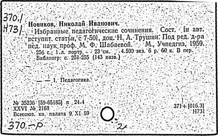 Н.И. Новиков: у истоков педагогической науки [Текст]: