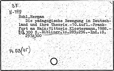 Литература: Blochmann E. H. Nohl in der pädagogischen Bewegung seiner Zeit. Göttingen, [1969].