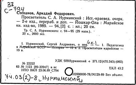 Литература: История Вятской гимназии за 100 лет ее существования, сост. М. Г. Васильев, Вятка, 1911; Васи и К. К., Коробов С. А., Рейнфельдт Б. К., Из истории развития философской и общественно-политической мысли в Марийском крае (дооктябрьский период), Йошкар-Ола, 1966; Степанов А. Ф., Просветитель С. А. Нурминский, Йошкар-Ола, 1989.
