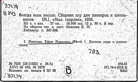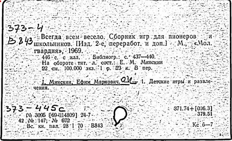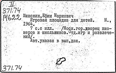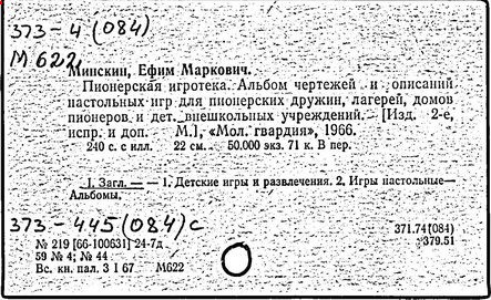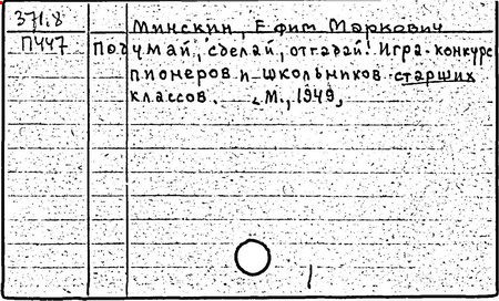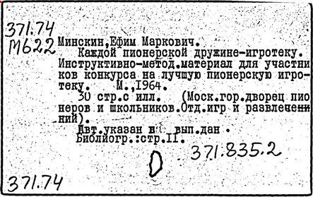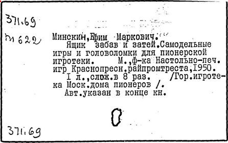Е. М. Минскин в своей работе по организации досуга детей шел от игр вожатого со своими питомцами и занимательных развлекательных программ, проводимых бригадой активистов-затейников на выезде, к выдаче инвентаря для игр и оборудования для опытов и фокусов во временное пользование отдельным детям и группам детей (пионерским форпостам), а затем – к организации стационарного игрового зала при пункте выдачи игр.