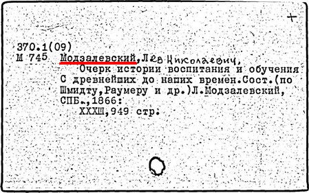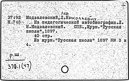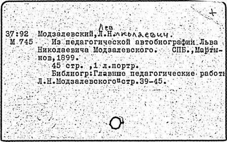Литература: Семенов Д. Д., Влияние школы и среды на развитие природного таланта. По поводу смерти Л. Н. Модзалевского, М., 1897; Зикеев Н. В., Жизнь и педагогические взгляды Л. Н. Модзалевского, Ученые записки МОПИ им. Крупской, 1957, т. 50, в. 4; Михайлова М. В., Л. Н. Модзалевский, Советская педагогика, 1987, № 10.