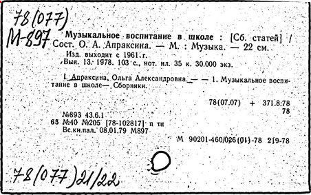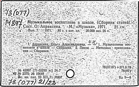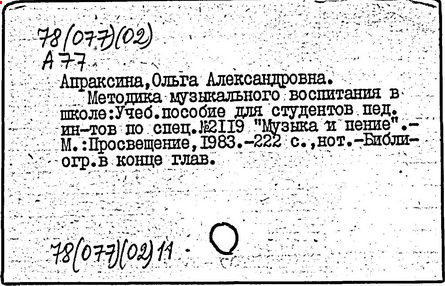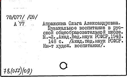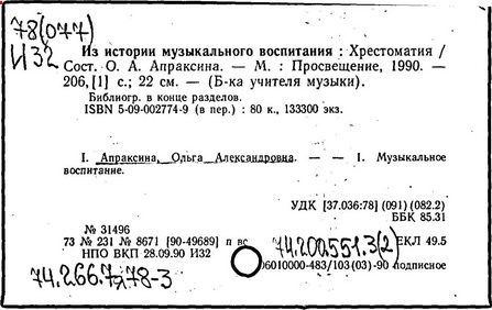 истории музыкальной педагогики [Текст]: [О. А. Апраксина