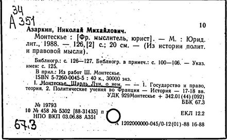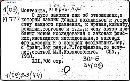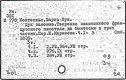 Книга "О духе законов" была внесена в "Индекс запрещенных книг", тем не менее, она выдержала 22 издания на протяжении двух лет (1748-1750 гг.), была переведена почти на все европейские языки. Первыми переводчиками этой книги в России были А. Д. Кантемир и А. Н. Радищев (оба перевода не сохранились).