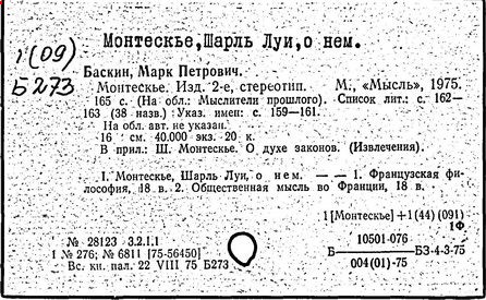 Литература: История французской литературы, т. 1. М., 1946; Баскин М. П. Монтескье. М., 1965; Shackleton R. Montesquieu. A critical biography. [Oxford], 1961; Starobinsky J. Montesquieu par lui-même. [Paris, 1963]; Loy J. Robert. Montesquieu. New York, [1968]; Etudes sur Montesquieu. [Paris, 1970]; Cabeen D. C. Montesquieu. A bibliography. New York, 1947; его же. A supplementary Montesquieu bibliography // Revue Internationale de philosophie. – 1955. – N 33-34.