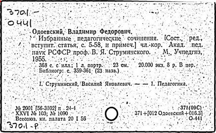 Педагогические основы организации В. Ф. Одоевским