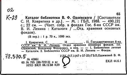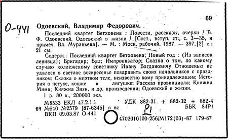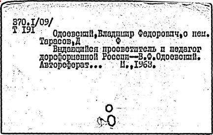 Роль кн. В.Ф. Одоевского в развитии книжной культуры в