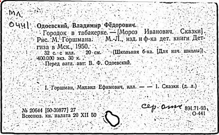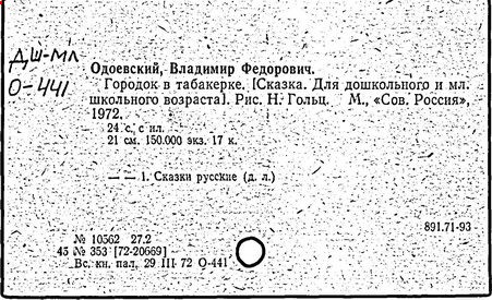 " Городок в табакерке " В.Ф. Одоевского [Текст]: