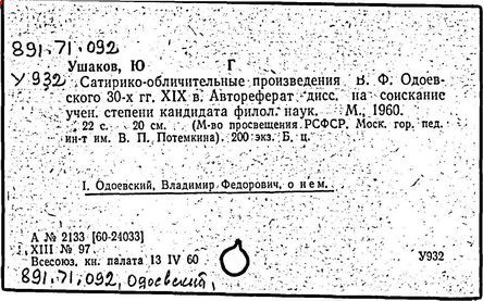 В. Ф. Одоевский [Текст]/ О.Д. Голубева; Рос. нац. б-ка.