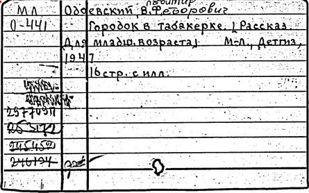 Кроме учебных книг для детей Одоевский написал ряд художественных произведений, чтение которых должно было, по мнению автора, пробудить в ребёнке не только мысль, но и воображение. "Городок в табакерке" (1834 г.), "Сказки и повести для детей дедушки Иринея" (1841 г.), "Мороз Иванович" (1847 г.) и другие произведения стали классикой отечественной детской литературы.