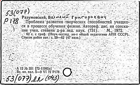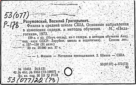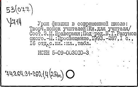 Литература: Бугаев А. И. Методика преподавания физики в средней школе (теоретические основы). М., 1981; Борисенков В. П. Больше разных школ, учебников, концепций... // Советская педагогика. – 1990. – № 2; Помелов В. Б. Педагоги и психологи Вятского края. Киров, 1993, Lapointe A., Askew J., Mead N. Learning Science, The International Assessment of Educational Progress. Princeton, 1992.