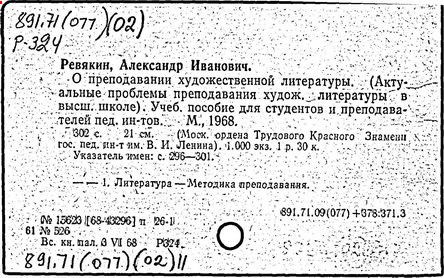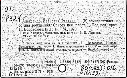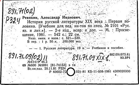 Литература: Ревякин А. И., Лит. энциклопедия, т. 9, М., 1935; Славина А. Б., Ревякин А. И., Краткая лит. энциклопедия, т. 6, М., 1971; Осьмаков Н. В., Пустовойт П. Г., А. И. Ревякин, "Науч. доклады высш. школы", Филол. науки, 1984, № 1; А. И. Ревякин. Библиография печатных работ (к 80-летию со дня рождения), М., 1980.
