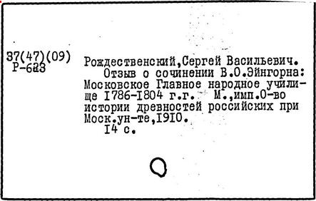 В 1912 г. опубликовал 1-й том "Очерков по истории систем народного просвещения в России в XVIII-XIX вв.", защищённый предварительно в качестве докторской диссертации (Большая Уваровская премия, 1913 г.). В книге рассматривались эволюция учебных заведений от профессиональных (петровской эпохи) к общеобразовательным, формирование идеи и различные проекты создания системы народного просвещения. Особо освещена деятельность императрицы Екатерины II в этой области. Во 2-м томе "Очерков" (не окончены) Рождественский предполагал представить историю народного просвещения как часть социальной политики в целом. Этой теме посвящены отдельные публикации Рождественского в 1907-1920-х гг.