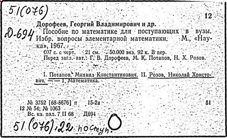 поступающих в Моск. ун-т/ Г.В. Дорофеев, М.К. Потапов,