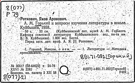 Литература: Памяти Я. А. Ротковича // Литература в школе. – 1975. – № 5; Бочкарев В. А., Бодрова Н. А., Сигал Л. М. Я. А. Роткович // Преподавание художественной литературы в школе. Куйбышев, 1975.