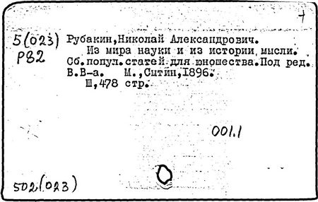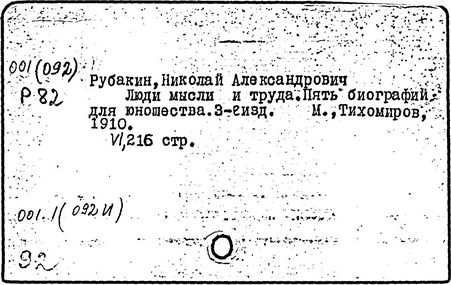 Н. Рубакин // Русская школа. - 1910. - № 11, отд. 1. - С. 153-188; № 12,