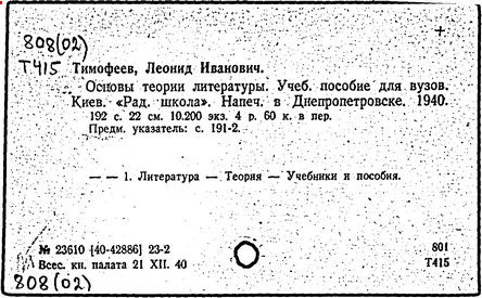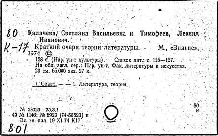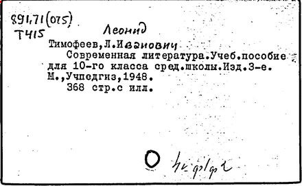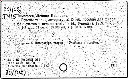 Литература: Гончаров Б. П., Ломидзе Г. И., Поспелов Г. Н. Леонид Иванович Тимофеев: (К 70-летию со дня рождения) // Филологические науки. – 1974. – № 12.