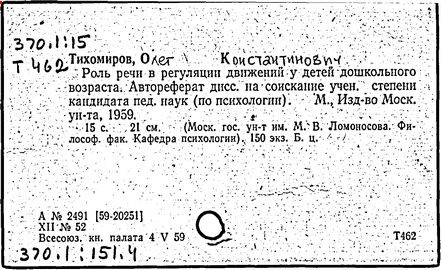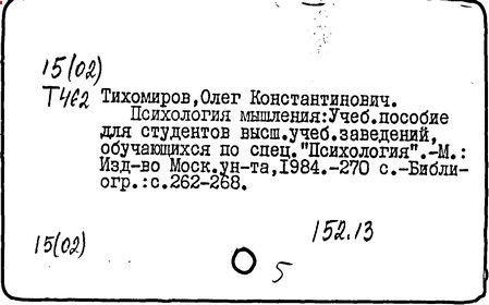 российский психолог, специалист в области теории и методологии психологии, психологии мышления, искусственного интеллекта и информатики. Доктор психологических наук (1968 г.), профессор (с 1970 г.). Заведующий кафедрой общей психологии факультета психологии МГУ им. М. В. Ломоносова (1990-2001 гг.). Член Ученого совета МГУ (с 1991 г.), заслуженный профессор МГУ (с 1998 г.). Член редколлегии журнала «Вестник МГУ. Серия 14. Психология». Награжден медалью «За доблестный труд» (1990 г.). Окончил отделение психологии философского факультета МГУ (1956 г.), аспирантуру факультета (1959 г.), защитив под руководством А. Р. Лурия кандидатскую диссертацию «Роль речи в регуляции движений у детей дошкольного возраста» (1959 г.). Основным результатом исследования было выделение и описание стадий развития произвольных движений в онтогенезе. Тихомирову пришлось работать в различных учреждениях прикладного профиля. Опыт его деятельности как психолога-практика отражен в исследованиях оценки задержек психического развития у детей, в нейропсихологических исследованиях на материале нейрохирургической клиники, в работах по психодиагностике в интересах судебной психиатрии и др. Истоки основной научной концепции Тихомирова, посвященной психологии мышления, тесно связаны с идеями А. Н. Леонтьева. Подход к мышлению как деятельности позволил Тихомирову теоретически разработать и экспериментально исследовать такие аспекты мышления как его мотивация, целеобразование, эмоциональная регуляция. С начала 1960-х гг. Тихомиров руководил лабораторией Психологии мышления на факультете психологии МГУ, где под его руководством разрабатывались методы анализа неосознаваемых психических процессов, недоступных для исследования на речевом уровне (регистрация движения глаз при решении задач, циклография движений пальца слепого шахматиста, использование физиологических коррелятов эмоций - КГР, частоты пульса и др.). В докторской диссертации Тихомирова «Структура мыслительной деятельности» (1968 г.) разработана смысловая теория мышления. Для интерпретации процессов творческого мышления введено понятие операциональных смыслов, проведено теоретико-экспериментальное исследование мотивационно-эмоциональной регуляции мыслительной деятельности (Эмоции и мышление /в соавт., М., 1980); предложена теория творческой деятельности человека, исследованы специфические механизмы управления поиском решения и формы отражения проблемной ситуации, разработано представление о двух стадиях в развитии высших психических функций. Мышление предстало как сложная многогранная человеческая деятельность, несводимая, в частности, к переработке символической информации (Структура мыслительной деятельности человека. М., 1969). В 1970-1980-е гг. Тихомиров исследует проблематику целеобразования в творческой деятельности (Психологические исследования творческой деятельности/ Ред. и соавт., М., 1975; Психологические механизмы целеобразования/ Ред. и соавт., М., 1977; Психология мышления, М., 1984). В эти же годы под его руководством оформляется новое научное направление - психология компьютеризации. Тихомиров формулирует психологические принципы проектирования систем информатики, обосновывает необходимость психологической оценки процесса компьютеризации и его последствий, проводит психологический анализ принятия реш