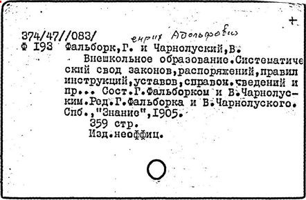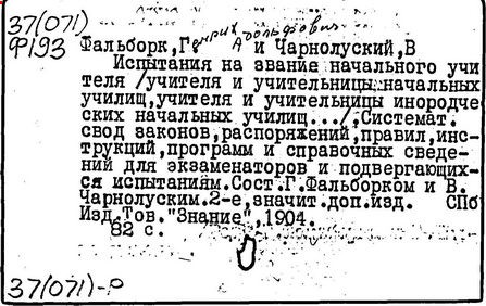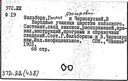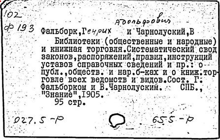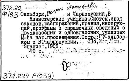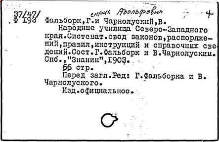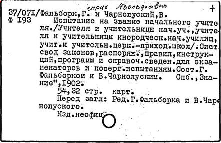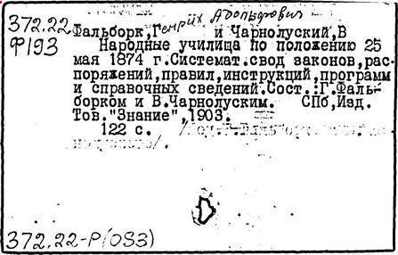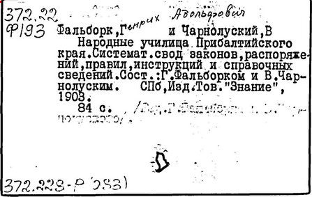 В 1891 г. Фальборк представил в Императорское вольное экономическое общество доклад о голоде, который в Трудах общества мог появиться только в сокращенном виде. Летом 1892 г. сделал пешеходное путешествие по неурожайным губерниям. Прочел ряд докладов по школьному и внешкольному образованию в петербургском комитете грамотности. Состоял до самого закрытия комитета товарищем председателя его и председателем издательской комиссии. По его инициативе поднят вопрос об открытии народных библиотек, возбужденный обращениями комитета во всех губернских и уездных земских собраниях и на волостных сходах Европейской России. Был членом союза взаимопомощи русских писателей и во время его закрытия состоял председателем ревизионной комиссии. Принимал близкое участие в "Невском обществе народных развлечений". Сотрудничал в "Русском Богатстве", "Русских Ведомостях", "Северном Вестнике", "Вестнике Воспитания"; состоял постоянным сотрудником журнала "Хозяин" по земским вопросам. Вместе с В.И. Чарнолуским написал "Народное образование в России" (Санкт-Петербург, 1899 г.) и "Настольную книгу по народному образованию" (3 тома); вместе с ним редактировал производимое Императорским вольным экономическим обществом "первое подробное исследование народного образования во всей России". Первые три тома этого исследования ("Начальное народное образование в России") вышли в свет, остальные печатаются (на момент опубликования данной статьи – прим.). Под редакцией Фальборка и Чарнолуского переведены на русский язык сочинения по статистике, народному образованию и философии Майра, Левассера, Гюно, Смита и др. В «Энциклопедическом словаре» Ф. А. Брокгауза и И. А. Ефрона им принадлежит статья: "Начальное народное образование" (ХХ, 728 и сл.).
