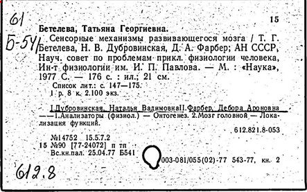 Дубровинская Н.В. // Физиология человека. - 1997. -