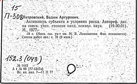 мотивации выбора [Текст]/ В.А. Петровский // ПСИХОЛОГИЧЕСКИЙ