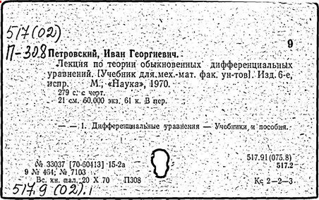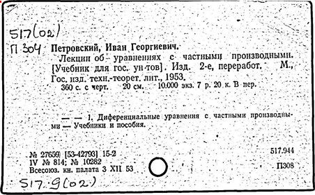 Литература: Иван Георгиевич Петровский, «Успехи математических наук», 1971, т. 26, в. 2, с. 1‒24; там же, 1974, т.29, в. 2 (посвящен памяти П.); Олейник О. А., Математические работы И. Г. Петровского, «Вестник МГУ. Математика, механика», 1974, № 1.