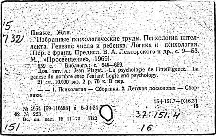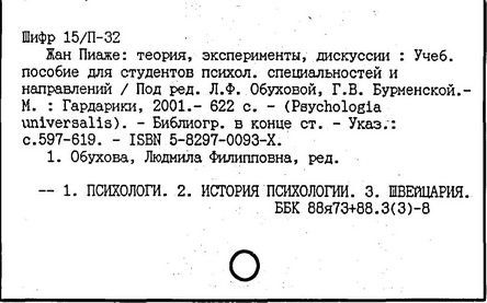 Литература: Флейвелл Д. X., Генетическая психология Ж. Пиаже, пер. с англ., М., 1967; Обухова Л. Ф., Концепция Ж. Пиаже: за и против, М., 1981; Выготский Л. С., Проблема речи и мышления ребенка в учении Ж. Пиаже, Собр. соч., т. 2, М., 1982; В e a r d R. M., An Outline of Piaget's developmental psychology, L., 1969; Richmond P. G., Introduction to Piaget for the teacher, L., 1970; Wadsworth B. J., Piagets theory of cognitive and affective development, N. Y., 1985.