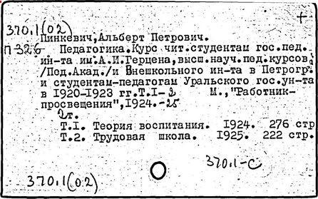 Вопросы теории педагогики в работах А. П. Пинкевича