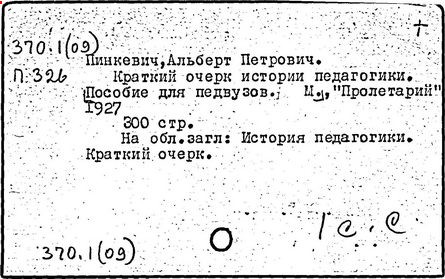 Краткий очерк истории педагогики [Текст]/ А. П. Пинкевич.-