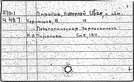 Литература: Волкович В. А., Друг человечества Н. И. Пирогов, СПБ, 1910; Памяти Н. И. Пирогова. Сб. ст., [СПБ, 1911]; Совр. значение пед. идей Н. И. Пирогова [Сб. ст.], СПБ, 1911; Красновский А. А., Пед. идеи Н. И. Пирогова, М., 1949; [Днепров Э. Д.], Н. И. Пирогов - зачинатель обществ.-пед. движения 60-х гг., в кн.: Очерки истории школы и пед. мысли народов СССР. 2-я пол. XIX в., М., 1976; Никольская А. А., Роль Н. И. Пирогова в рус. пед. психологии, ВП, 1982, № 1; её же, Н. И. Пирогов: нравственный человек - цель воспитания, СП, 1990, № 11.
