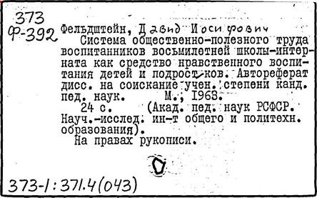 [Текст]/ Сост. Д. И. Фельдштейн.- М.: Б. и.,