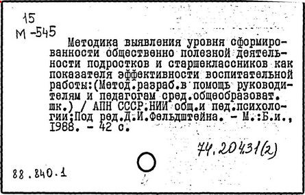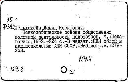 Н. А. Цветкова; ред. Д. И. Фельдштейн; Рос.
