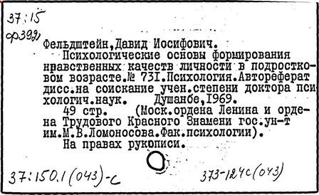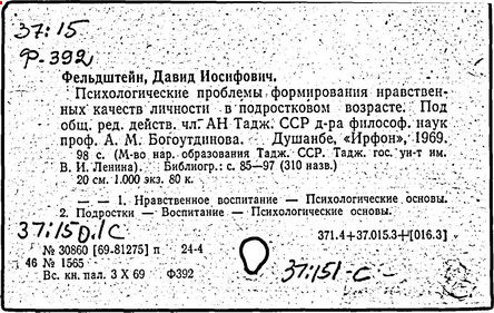 70 т/ Гл. ред. Д.И. Фельдштейн ).-